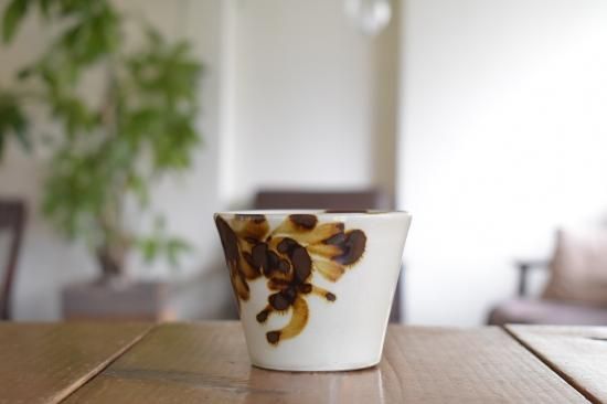 眞喜屋 修 / そば猪口 菊唐草 鉄釉