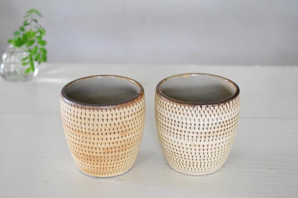 「飛び鉋(とびかんな)」の模様は刃先で連続した削り目をつける伝統技法のひとつ。